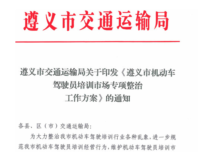 遵义市交通运输局关于印发《遵义市机动车驾驶员培训市场专项整治工作方案》的通知