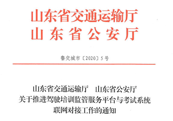 为实现“计时培训系统”与“考试系统”两个平台有效对接,“济南、威海、聊城为试点城市。2020年10月1日前,山东全省所有驾校完成计时系统升级应用接入培训平台与考试平台,全省公安交通管理部门完成考试系统闸机改造并实行考试前学时核查”的要求。2020年10月20日(含当日)之后在市公安局交巡警支队车辆管理所报名受理的学员,将启动培训学时与考试系统联网实施数据上传。自2020年11月20日起实行考试前学时核查。