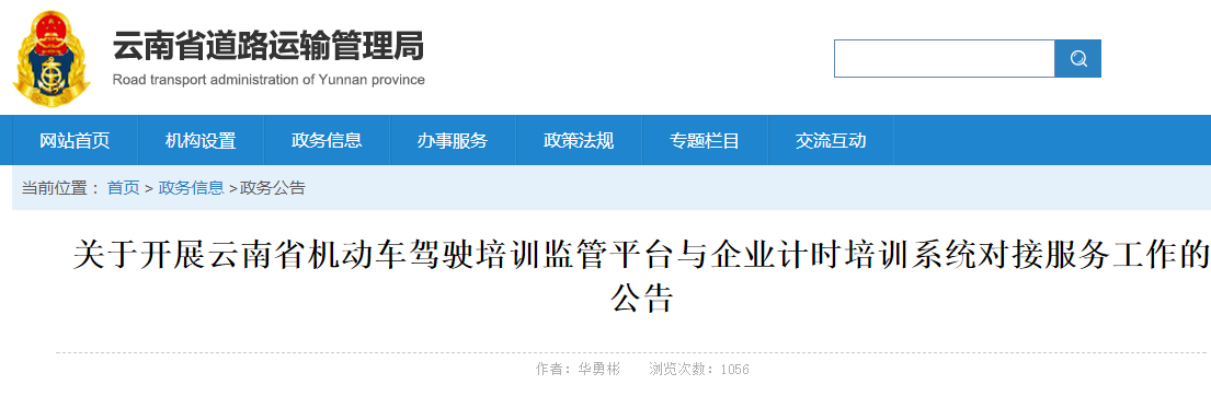 自2020年10月15日起工作日的上午8:30—11:30,云南省运管局接受本省驾培机构选用的计时培训系统、计时终端的对接报名,报名截止时间为2020年11月16日上午11:30。