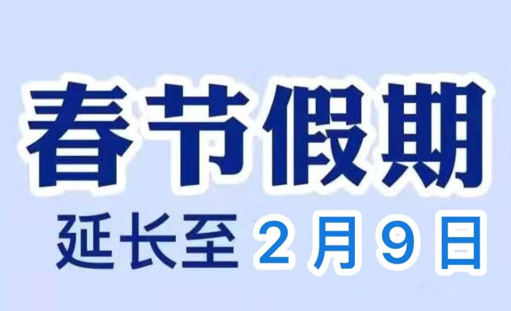 2020年春节假期延长到2月9日(农历正月十六,星期日),2月10日(星期一)正常上班。如有变动再另行通知! 假期延长期间给您造成的不便敬请谅解!顺延期间我司所有员工手机、微信、QQ等通讯工具保持畅通,如有问题可直接联系!我们将尽最大努力为客户提供及时、专业、满意的服务!