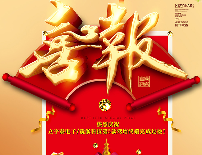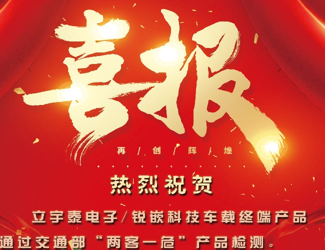 2019年1月18日,立宇泰电子/锐嵌科技驾培管理终端(产品型号:LACZ-68F1)正式通过中国交通通信信息中心、交通安全应急信息技术国家工程实验室的技术检测并取得报告,该驾培管理终端符合《机动车驾驶员计时培训系统计时终端技术规范》(交通运输部2016年第17号公告)规定的计时终端的相关技术要求。