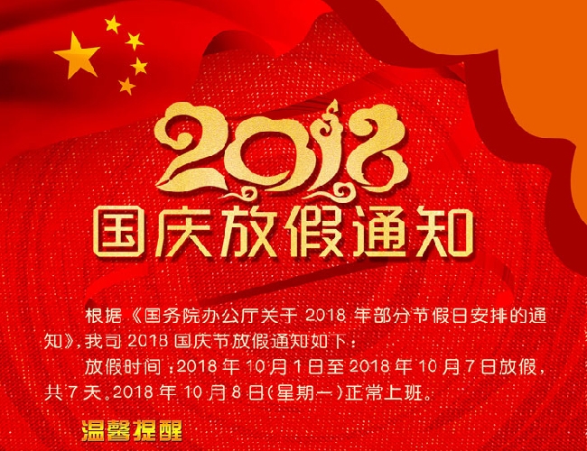 立宇泰/锐嵌2018年国庆节放假通知!祝大家国庆节快乐!