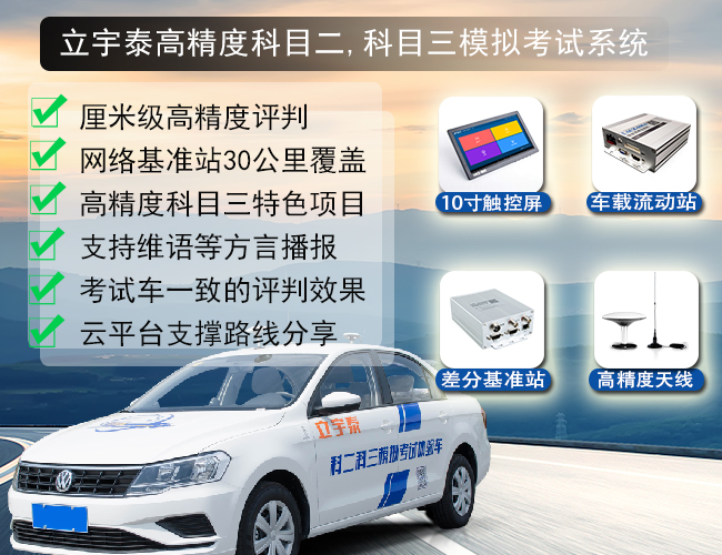 立宇泰LACZ-10G1高精度模拟考试系统产品是专门为驾校科目二、科目三模拟考试量身定制的驾考产品。厘米级定位精度,只需要一台车载驾考一体机加一套基站套装 ,就可以将普通教练车升级为考试车辆,完全媲美考试车产品形态。