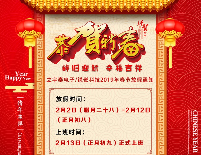立宇泰2019年春节放假通知!